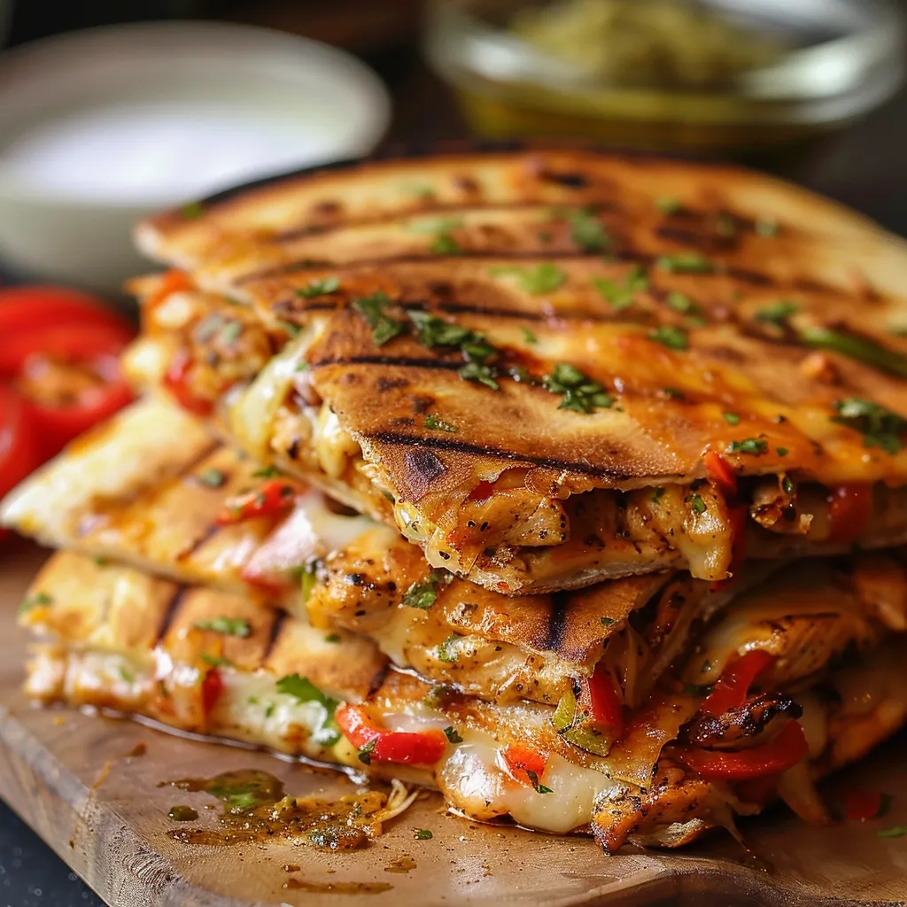 Crispy pan-fried tortillas stuffed with seasoned chicken, melted cheese blend, and refried beans for an authentic Mexican favorite.